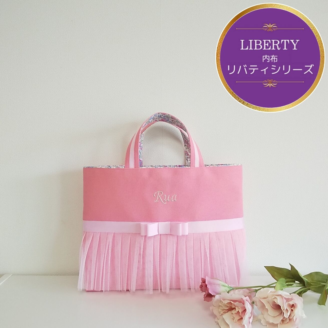 *LIBERTY*リバティ【レッスンバッグ】ピンク×ベビーピンクリボン ~選べる内布~