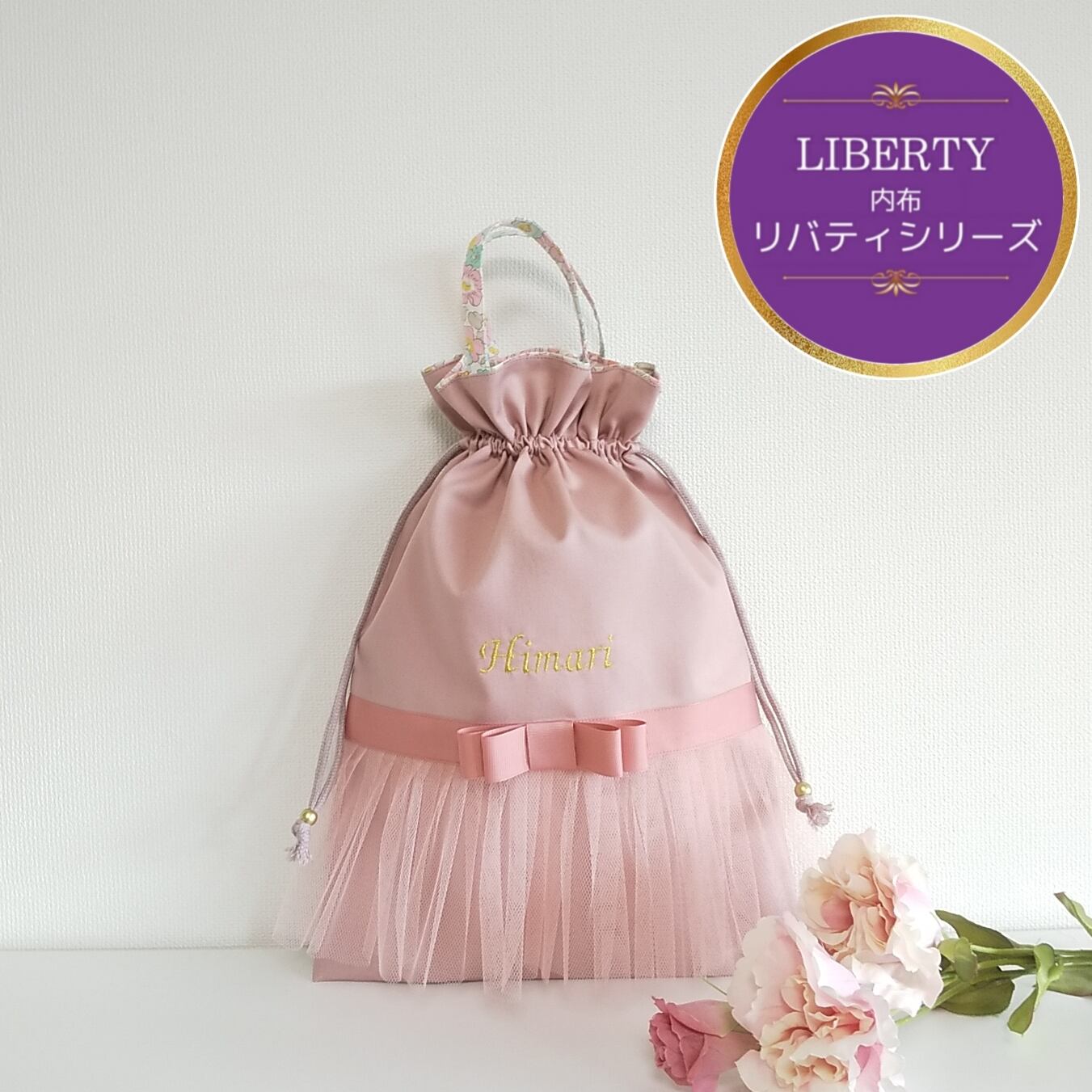 *LIBERTY*リバティ【お着替え袋】くすみピンク×ときいろリボン ~選べる内布~