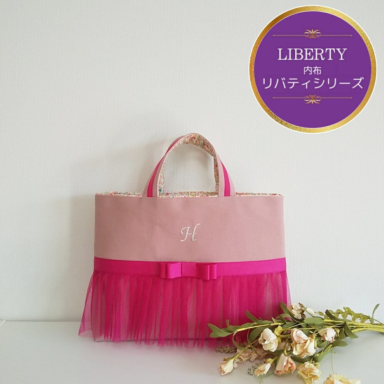 *LIBERTY*リバティ【レッスンバッグ】くすみぴピンク×チェリーピンクリボン ~選べる内布~